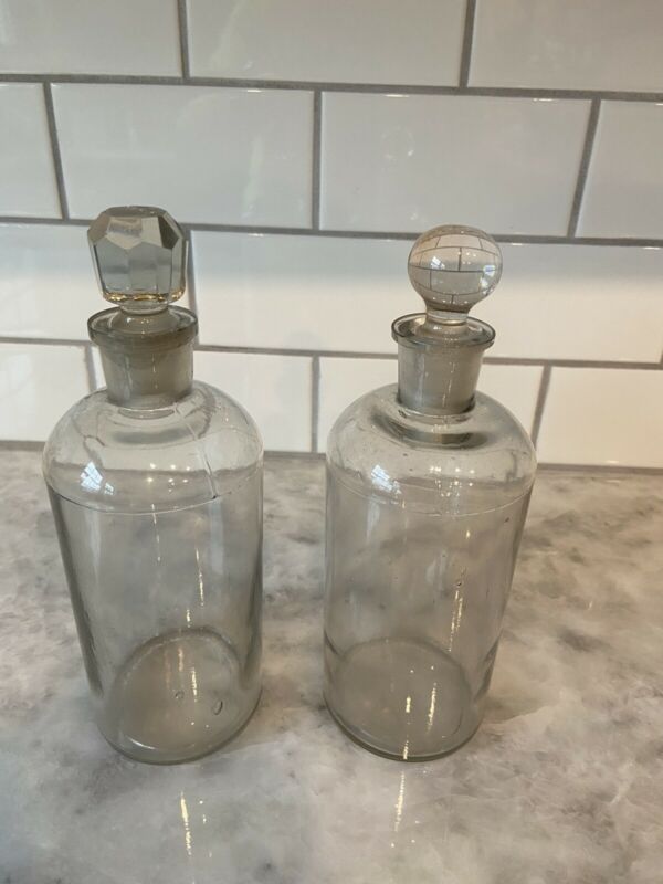 Title (ebay affiliate link): Apothecary Bottles Clear Lot Of 2 With Glass Stoppers 16 Ounces Each.