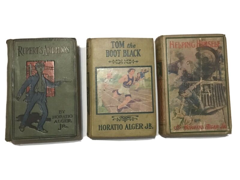 Title (ebay affiliate link): 1899 Horatio Alger Jr 3 Book Set, Ruperts Ambition, Helping Himself, Tom Boot