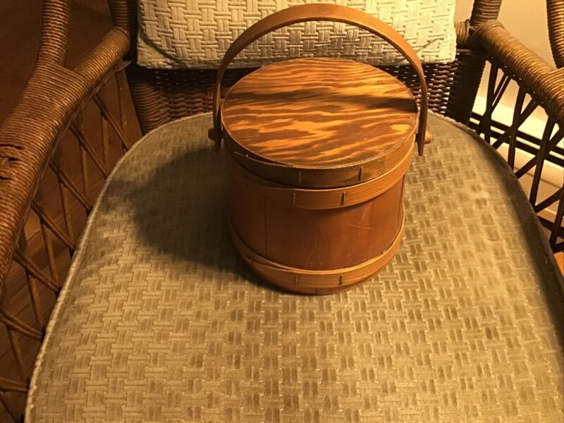 Title (ebay affiliate link): Primitive Vintage Small Wood Firkin With Cover And Wood Swing Handle