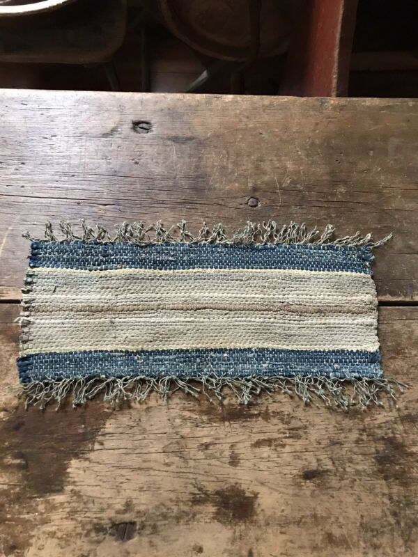Title (ebay affiliate link): BEST Old Big Antique Rag Rug Candle Table Mat Blues Creams Textile AAFA Muted
