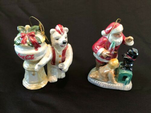 Title (ebay affiliate link): MINT Lot of 2 Coca-Cola 2004 Pearlescent Porcelain Ornaments Santa & Polar Bear