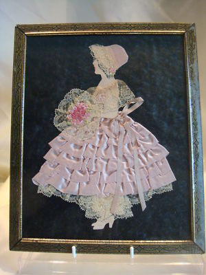 Vintage Fashion Paper Doll Satin/Lace Ribbon Picture