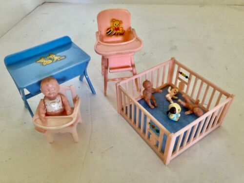 VINTAGE RENWAL BABY NURSERY DOLLHOUSE FURNITURE WITH RENWAL BABY