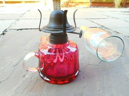 Title (ebay affiliate link): FINE ORIGINAL ANTIQUE VICTORIAN CRANBERRY GLASS ''FALKS EUREKA'' OIL LAMP