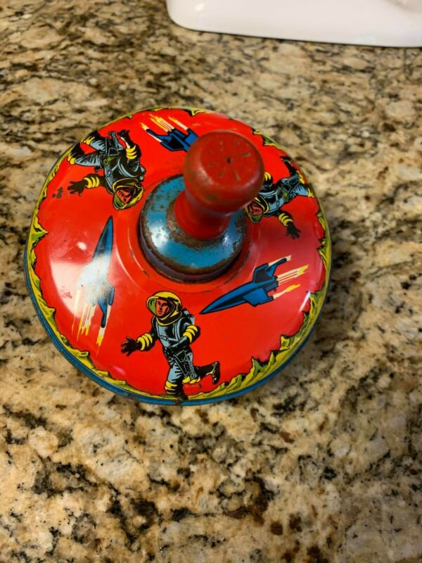 Antique Vintage Metal Spin Top Toy Space Still Works