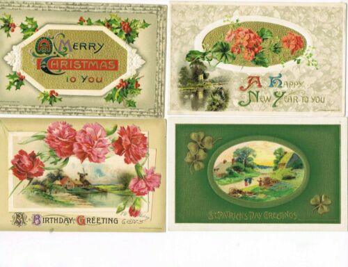 LOT of 4 ANTIQUE EARLY 1900s HOLIDAY / GREETING Postcards * JOHN WINSCH * #928E