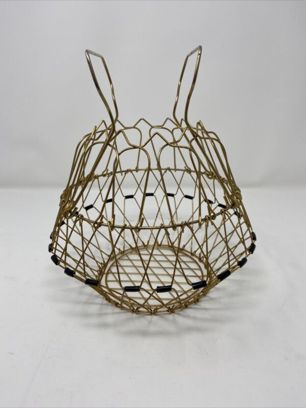 2-Layer Antique Vintage COLLAPSIBLE WIRE EGG BASKET French Country Farm