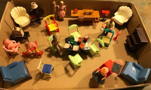 Lot of 20 Pieces Renwal Brand Vintage Doll House Furniture,People,Accessories+