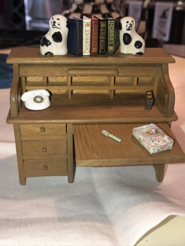 Lot Vintage Dollhouse Miniature Furniture Sonia Messer?Desk, Stafford Style Dogs