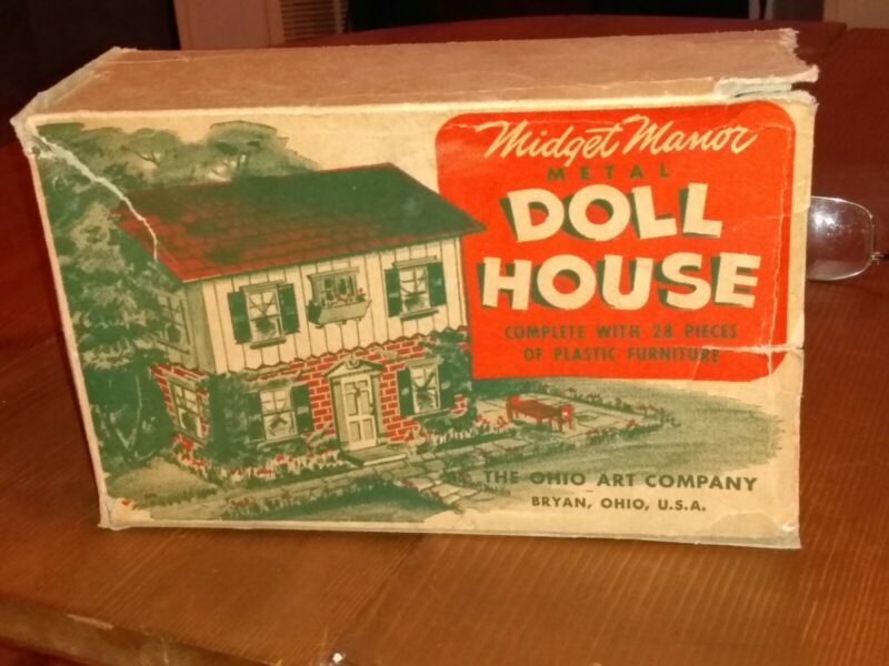 Title (ebay affiliate link): Vintage Ohio Art Midget Manor Metal Doll House #95 W/Furniture and Original Box