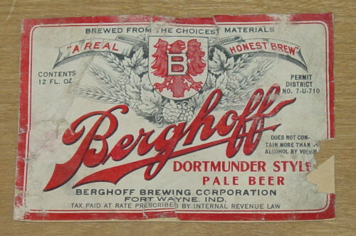 Title (ebay affiliate link): 1 beer label from Fort Wayne, Indiana, Berghoff Dortmunder, 12 oz. U-permit IRTP