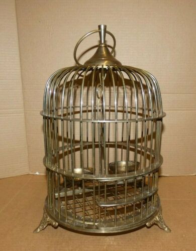 ANTIQUE HEAVY BRASS BIRDCAGE ORNATE FOOTED