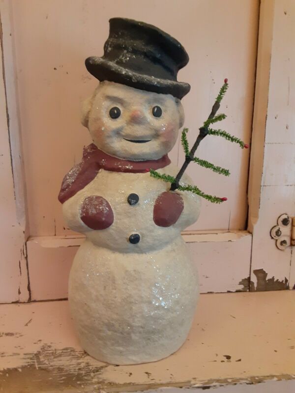 Title (ebay affiliate link): Primitive VINTAGE Paper Mache SNOWMAN 12 INCHES