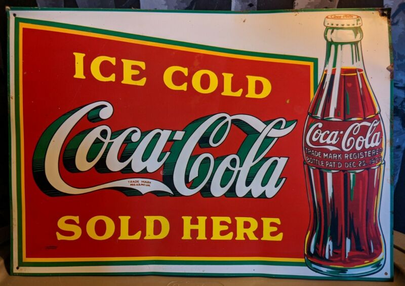 Title (ebay affiliate link): Coca Cola Vintage Sign Tin, Ice Cold Sold Here Memorabilia 1989 made in USA