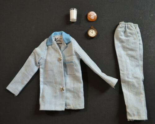 Title (ebay affiliate link): Vintage 1960s Ken Doll #781 Sleeper Set Blue Striped Pajamas w/ Clock Roll Milk
