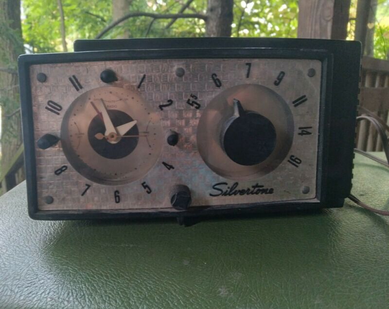 Title (ebay affiliate link): Antique Vintage Silvertone Black Ebony Radio Clock Working