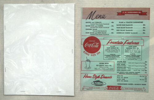Title (ebay affiliate link): VINTAGE FW WOOLWORTH COCA-COLA COKE PAPER LUNCH COUNTER MENU 1950-60s CHEAP FOOD
