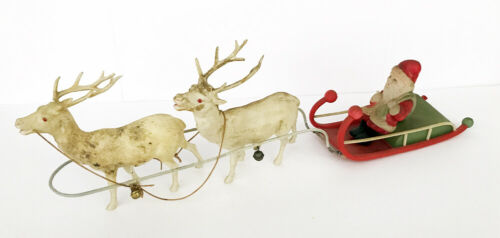 Title (ebay affiliate link): Vintage Celluloid SANTA CLAUS SLEIGH REINDEER Bells Christmas JAPAN 18" 1930''s