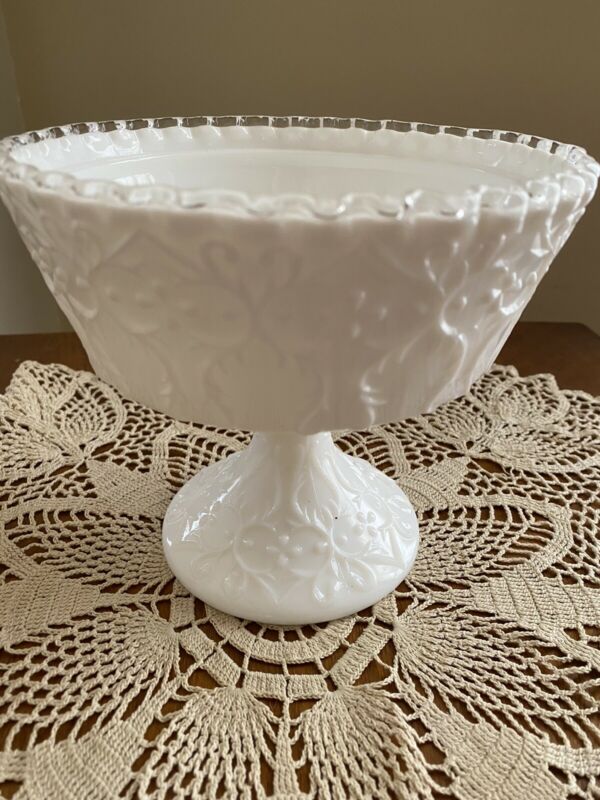 Vintage Fenton Spanish Lace Milk Glass Compote Dish