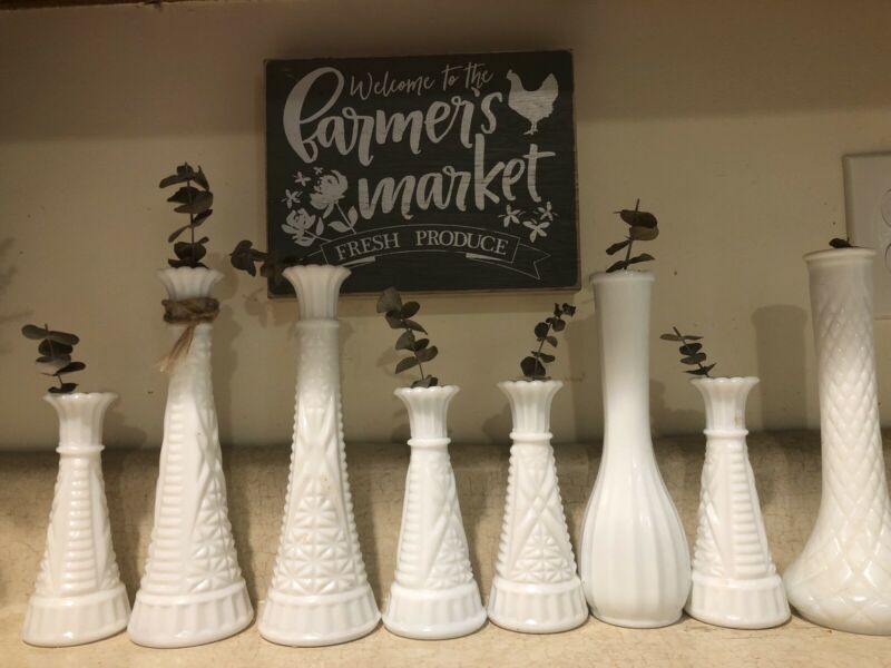 Vintage White Milk Glass Tall/Short Mixed Vases Lot of 8