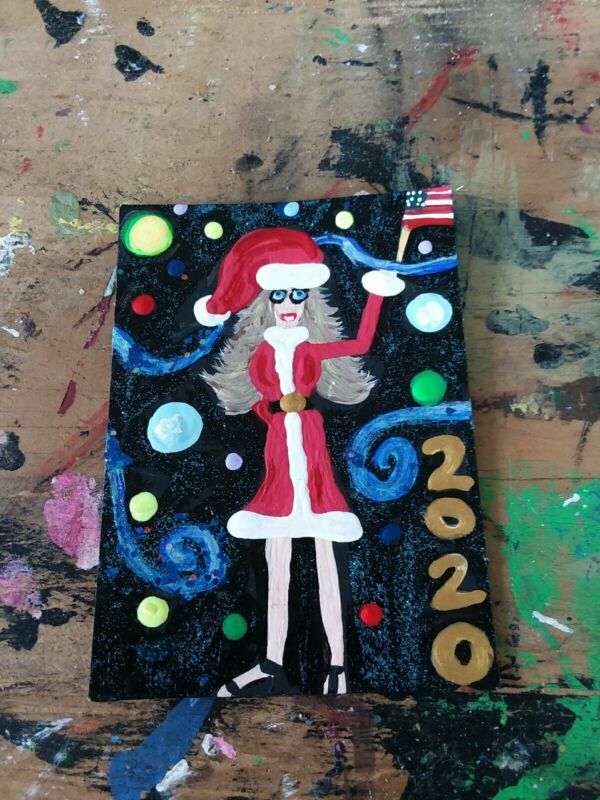 Title (ebay affiliate link): painting MELANIA TRUMP 2020 art TRADING CARD ACEO CHRISTMAS SANTA Starry Night