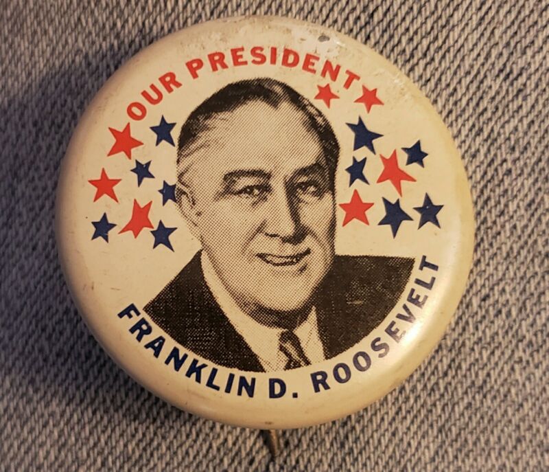 Title (ebay affiliate link): Vintage Our President Franklin D Roosevelt Political Campaign Button Pin 1 3/8"