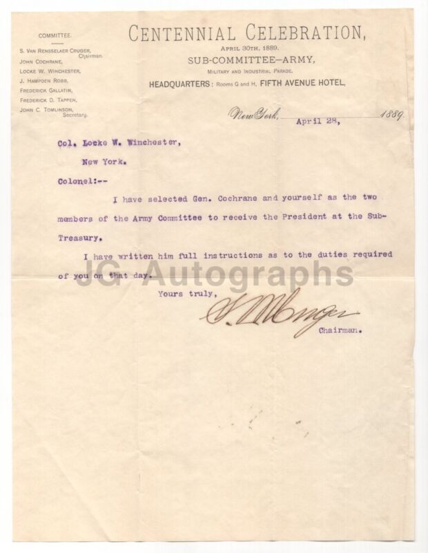 Title (ebay affiliate link): Stephen Van Rensselaer Cruger - Signed George Washington Centennial TLS