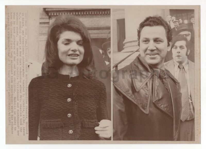 Title (ebay affiliate link): Jacqueline Kennedy w Photog Ron Galella Leaving Court - Wire Service Photo