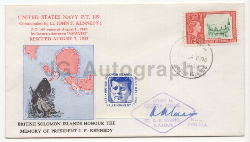 Title (ebay affiliate link): Arthur Reginal Evans - JFK, PT-109 Rescue, WWII - Signed JFK First Day Cover