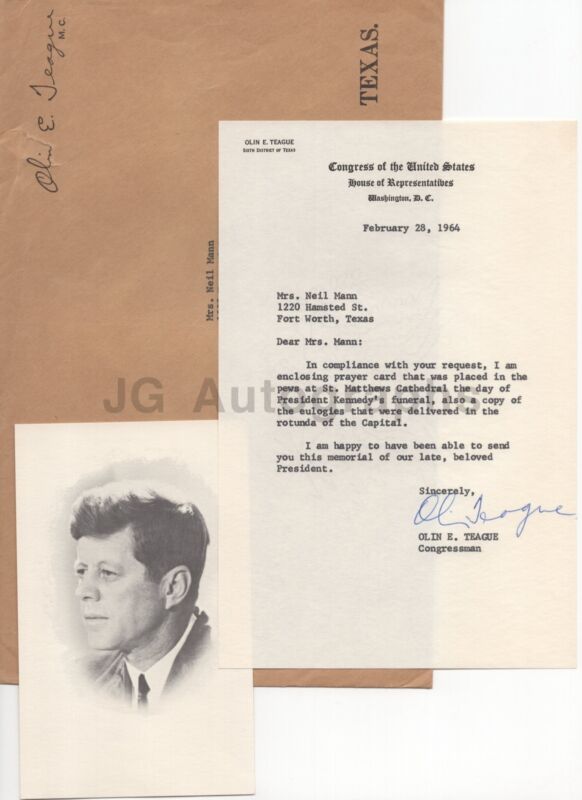 Title (ebay affiliate link): Olin E. Teague - World War II Vet - TLS with JFK Prayer Card