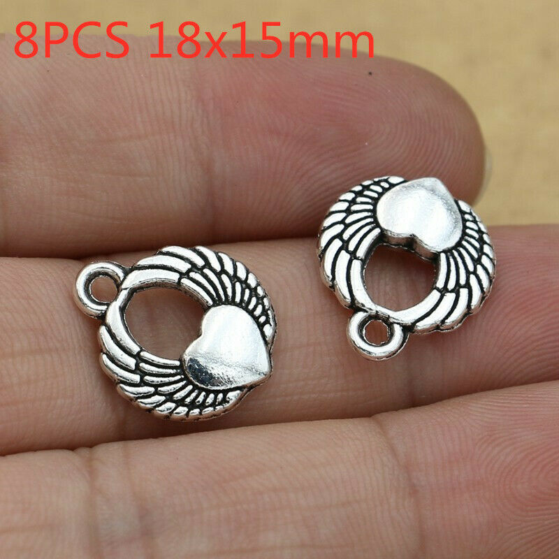 8pcs Heart Wings charms Antique Silver Tone Pendant Bead Jewelry Making 18x15mm