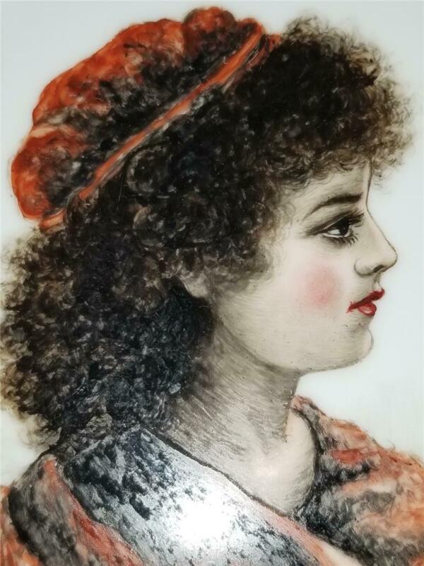 Title (ebay affiliate link): Antique 8.5" Porcelain Plate H&C Bavaria Hand Painted Woman Curly Dark Hair Cap
