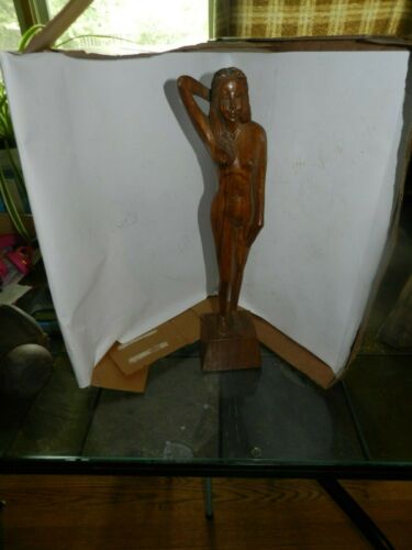 Vintage 18" Hand Carved Wood Nude Woman Statue Sculpture UnSigned