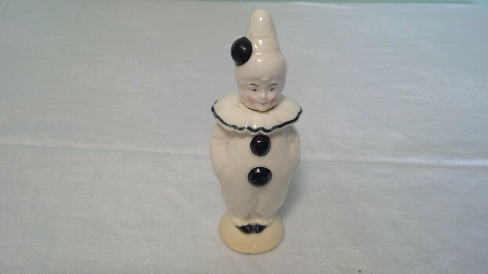 Title (ebay affiliate link): VINTAGE CLOWN JESTER PERFUME BOTTLE & GLASS DAUBER WHITE WITH BLACK TRIM #299