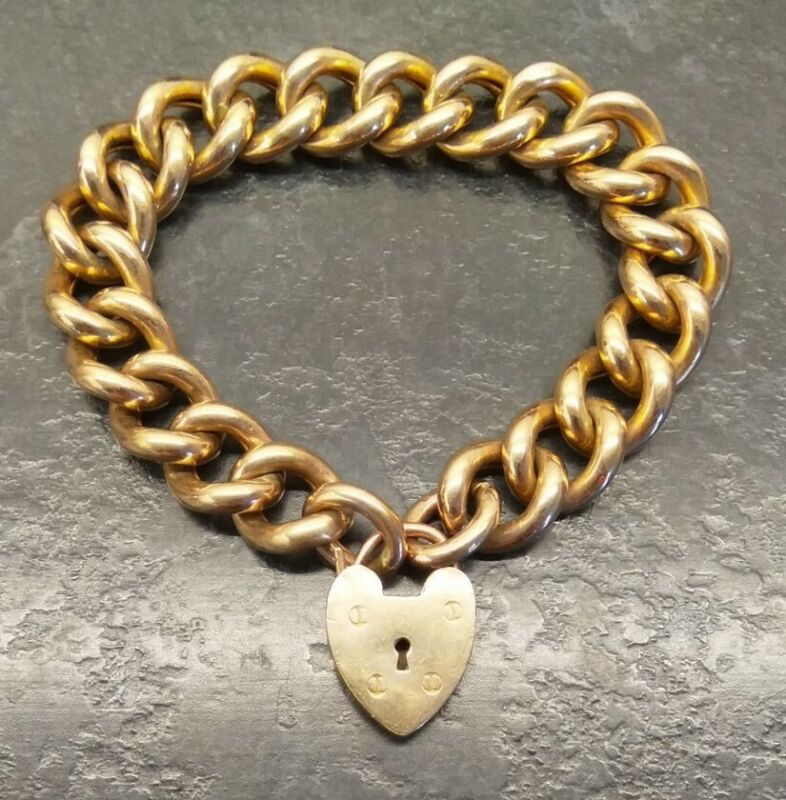 Title (ebay affiliate link): Antique Rolled Gold Large Curb Link Chain Bracelet & Heart Shaped Padlock 7 3/8"