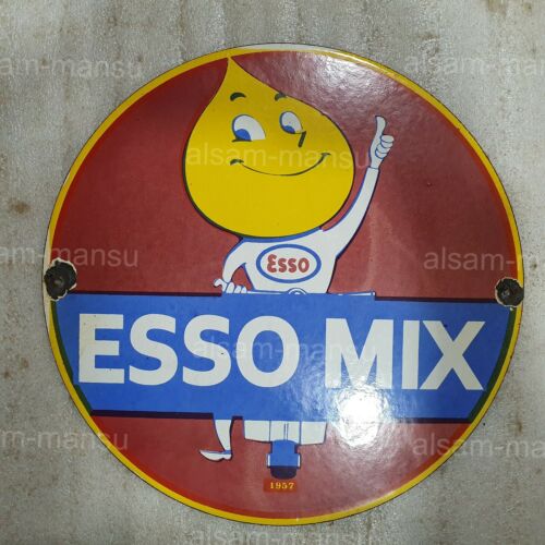 ESSO MIX 12 INCHES ROUND VINTAGE ENAMEL SIGN