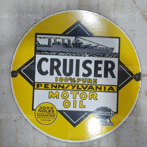 CRUISER MOTOR OIL 12 INCHES ROUND VINTAGE ENAMEL SIGN