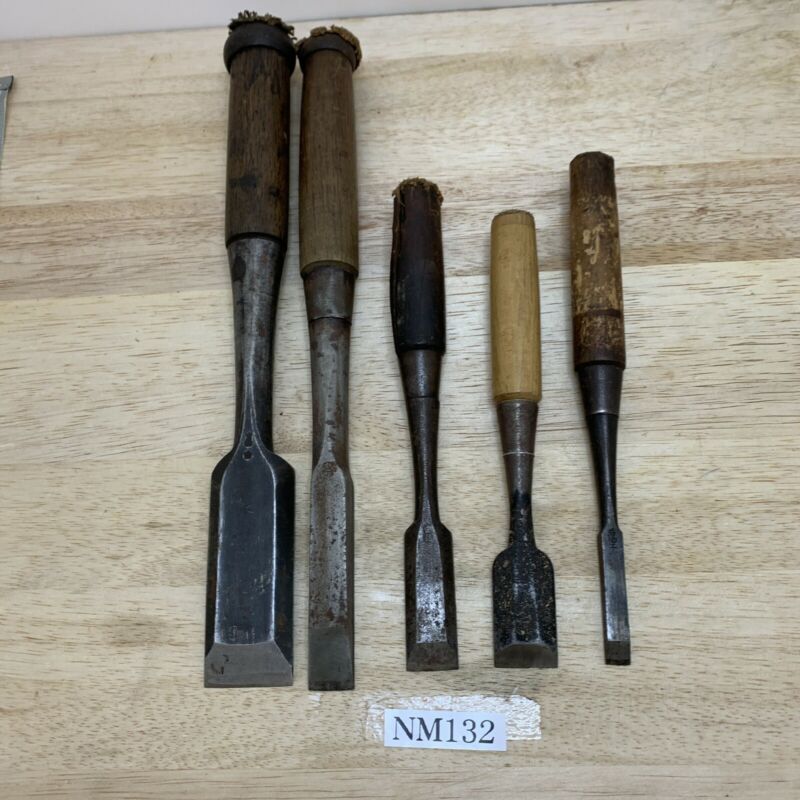 Used Japanese Chisel Nomi Carpentry Tools Woodworking 5 pics set NM132