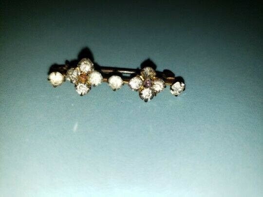 Antique Paste Jeweled Flower Bar Pin/Brooch