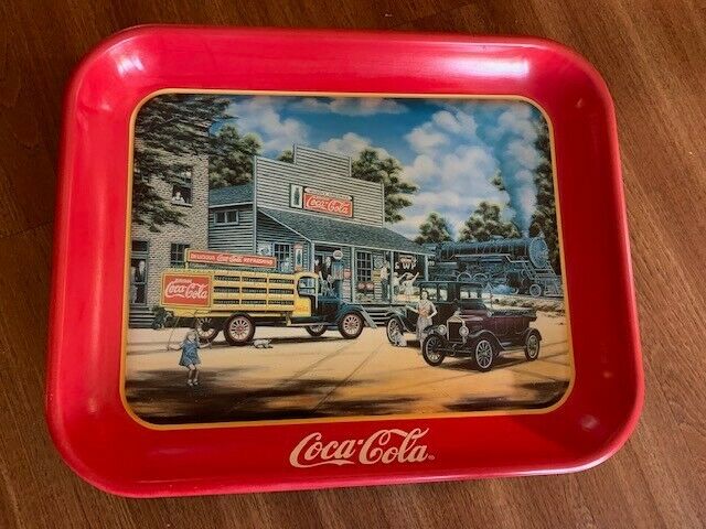 Title (ebay affiliate link): Coca Cola serving tray art 1997 Pamela Renfroe "all aboard"
