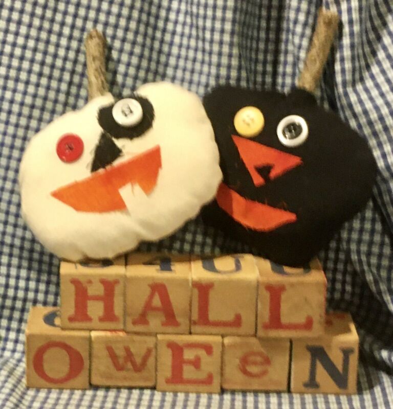 Title (ebay affiliate link): Vintage Toy ABC illus HALLOWEEN Wood Blocks & Handmade Cloth pRiM JOL Ornies
