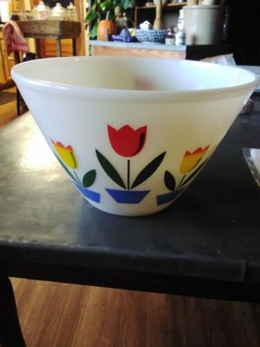 Title (ebay affiliate link): VINTAGE FIRE KING TULIP MIXING BOWL LARGE 9 1/2 INCHES OVEN WARE GREAT