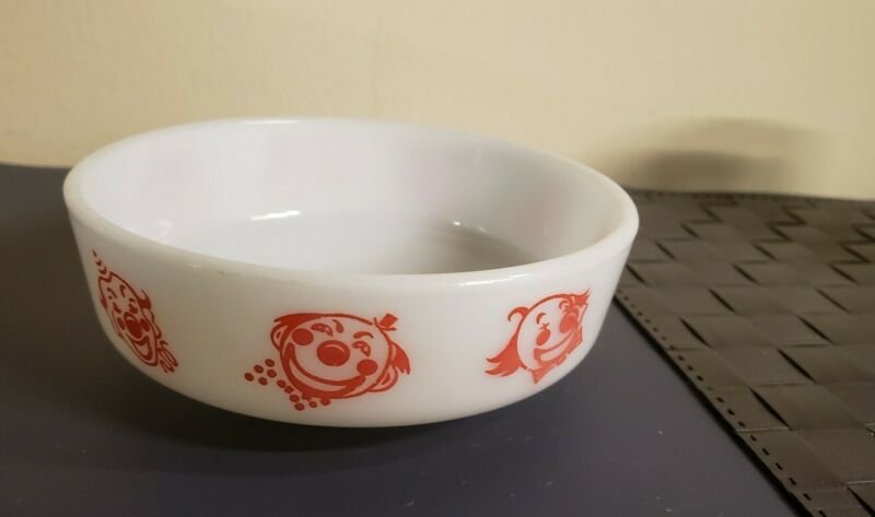 VTG PYREX CHILDREN''S CIRCUS CLOWN MILK GLASS BOWL