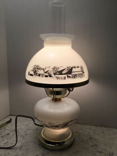 Title (ebay affiliate link): Currier & Ives Gone With The Wind Table Lamp Hurricane Milk Glass