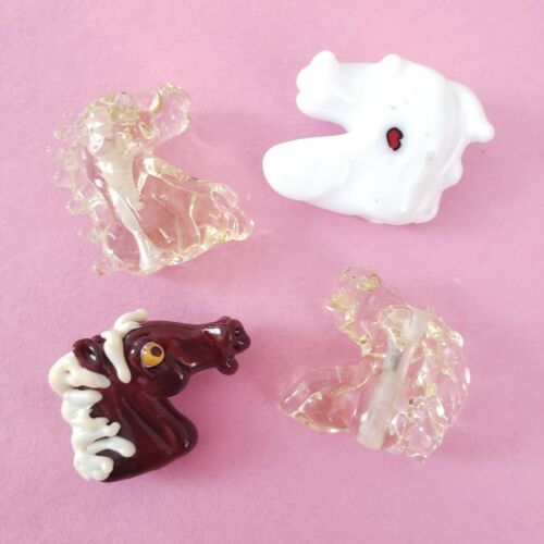 Set of 4 Handmade Lampwork Beads Horse Head Beads Lamp Work Crafts Milk Glass