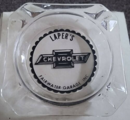 Vintage CHEVROLET Dealership Glass ASHTRAY....NICE!....Fairwater, Wisconsin?