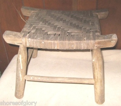 Title (ebay affiliate link): Antique Folk Art Primitive Milking Stool Rush Seat VT