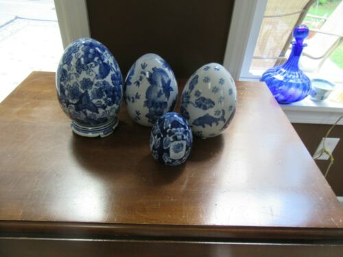 Title (ebay affiliate link): 4 - Blue White Decor Ceramic Eggs Egg Shaped 4" to 7 1/2"