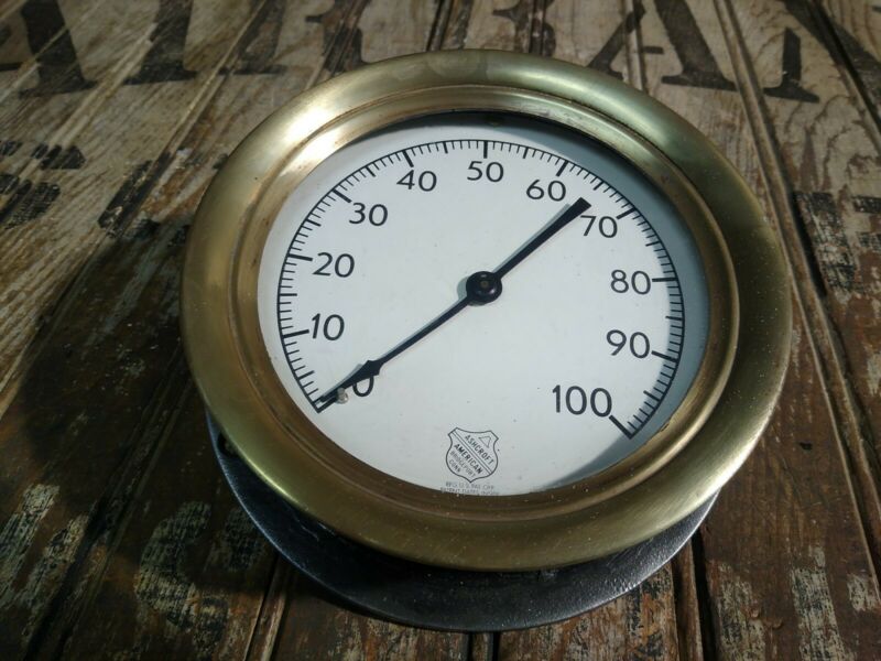 Title (ebay affiliate link): Vintage Antique ASHCROFT 7" Brass Steam Engine Pressure Gauge Steampunk