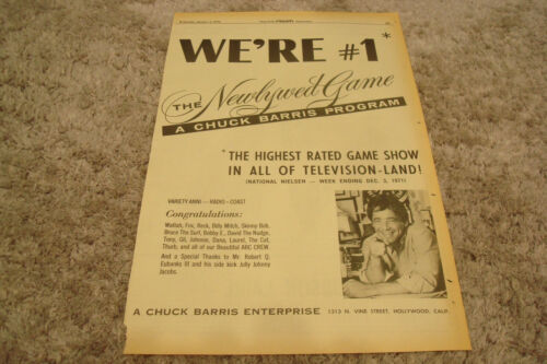 CHUCK BARRIS with THE NEWLYWED GAME 1972 "We''re #1" congrats ad to Bob Eubanks
